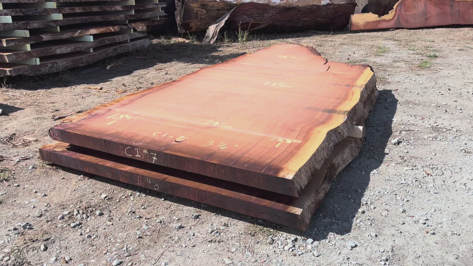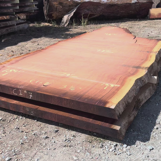 CONTACT USGiant Sequoia Live Edge Slab – 15.33' x 79" x 3.5" – Old Growth, Air-Dried – #C1-7