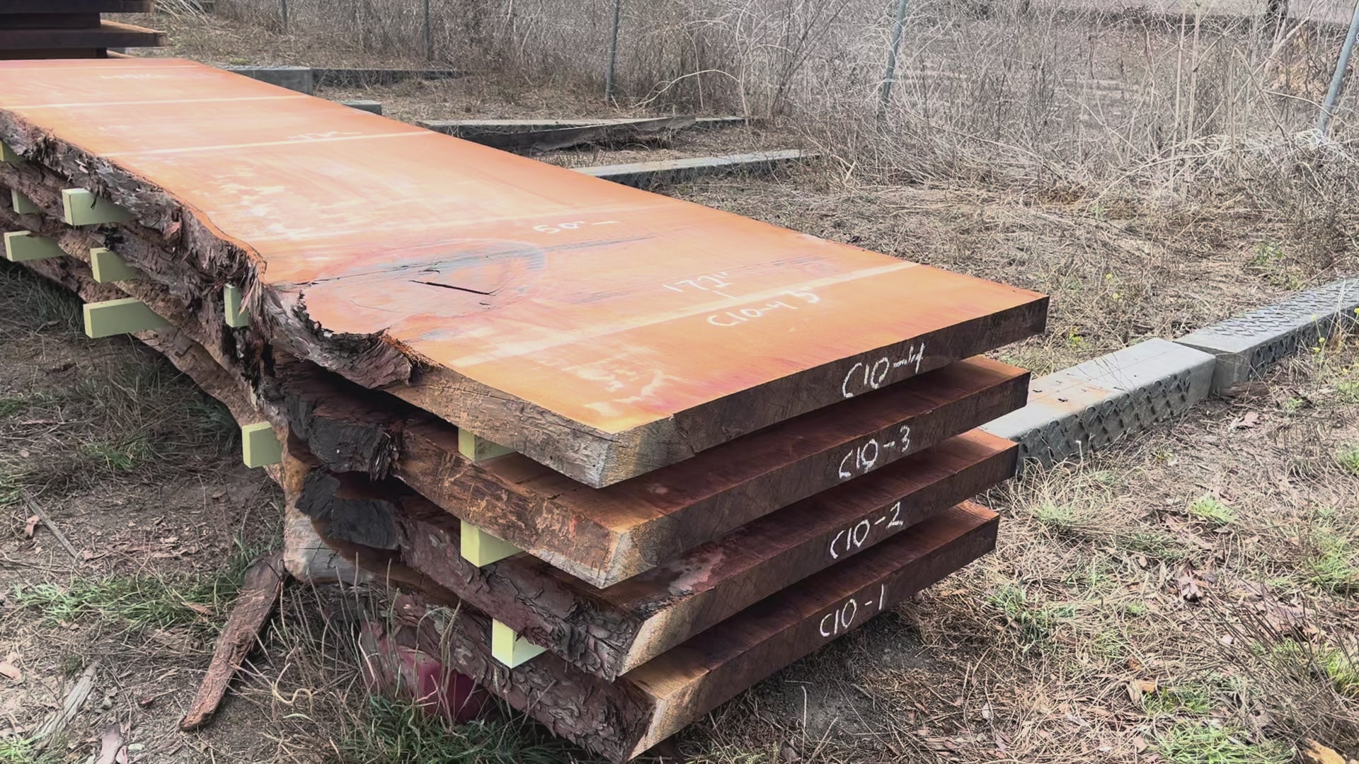 CONTACT USGiant Sequoia Live Edge Slab – 14.33' x 50" x 3" – Old Growth, Air-Dried – #C10-4