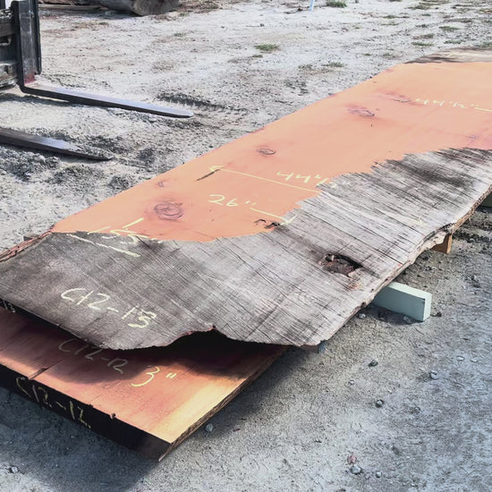 CONTACT USGiant Sequoia Live Edge Slab – 12.92' x 44.5" x 1.5" – Old Growth, Air-Dried – #C12-13
