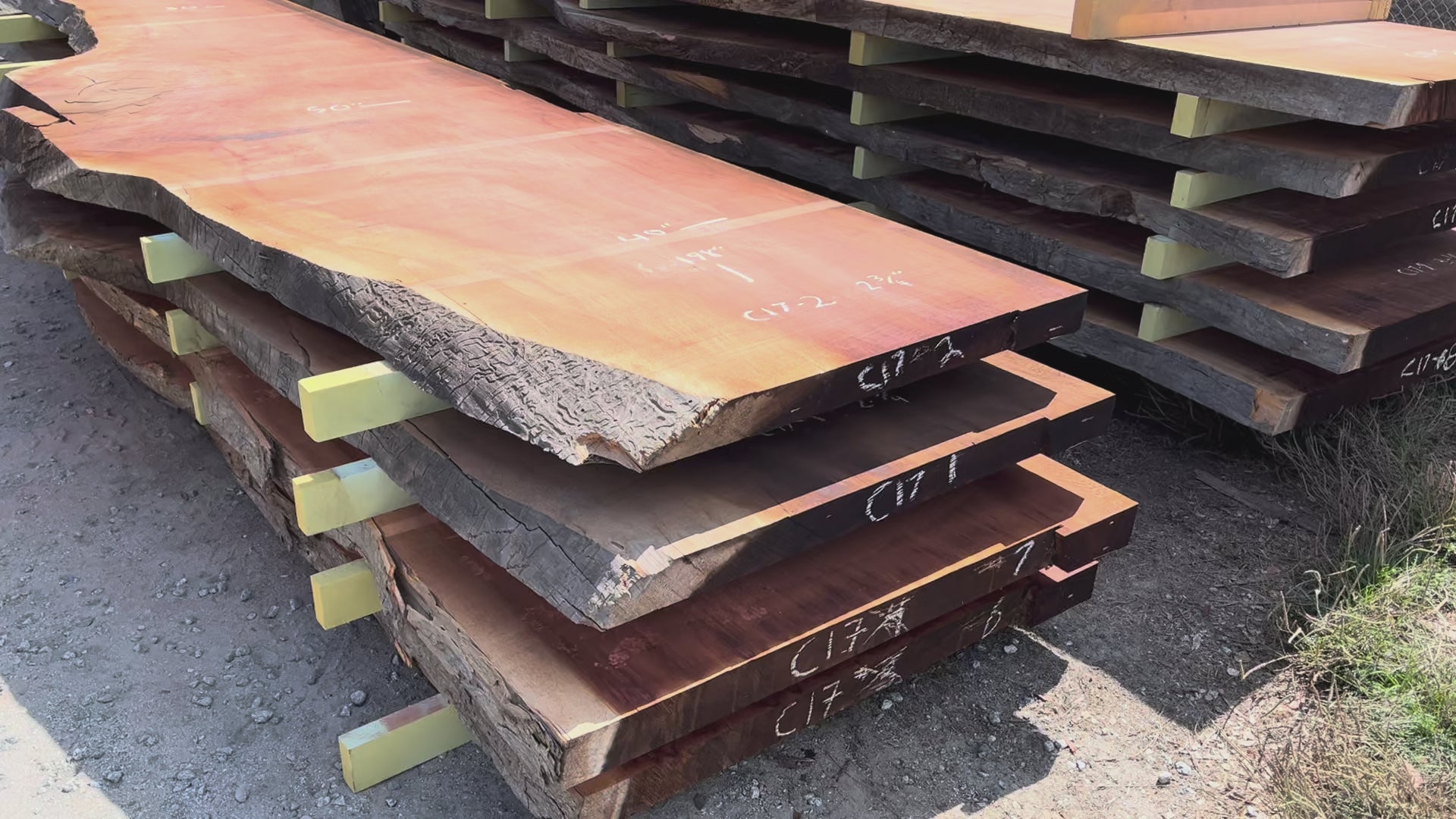 CONTACT USGiant Sequoia Live Edge Slab – 16.5' x 50" x 2.75" – Old Growth, Air-Dried – #C17-2