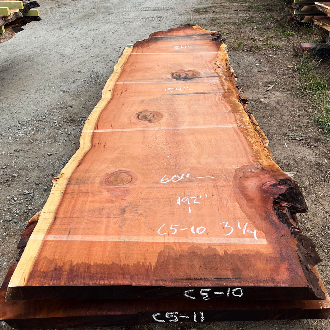 Giant Sequoia Live Edge Slab – 16' x 60" x 3.25" – Old Growth, Air-Dried – #C5-10