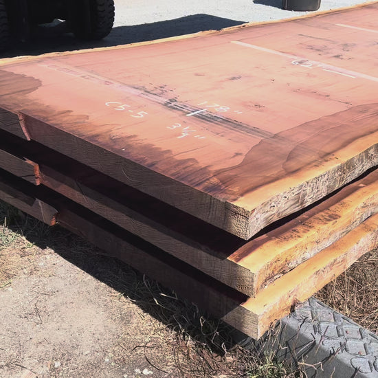 CONTACT USGiant Sequoia Live Edge Slab – 16.17' x 62" x 3.25" – Old Growth, Air-Dried – #C5-5